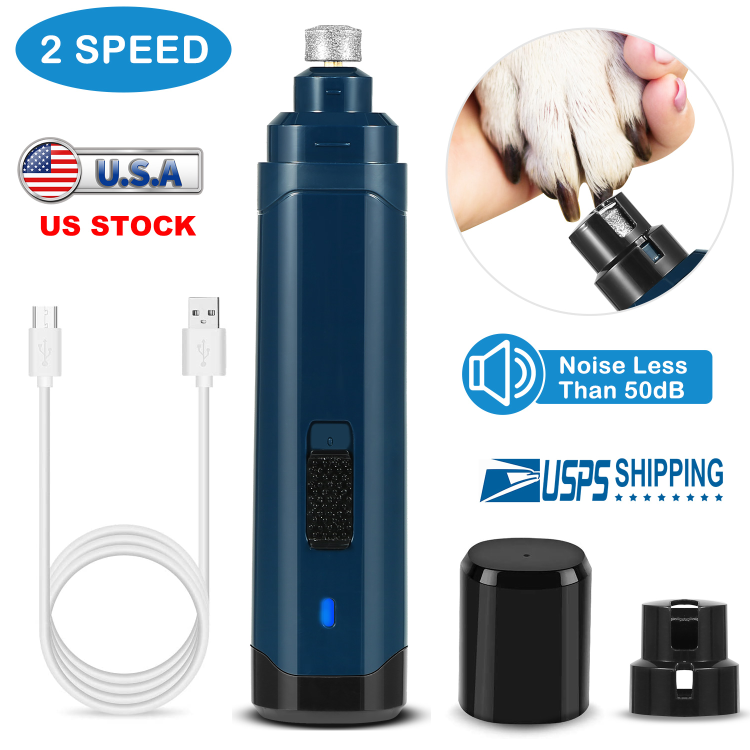 Home > Dog Nail Grinder 2 Speeds Quiet USB Rechargeable Pet Nail Grinder Professional Pet Nail Trimmer Cordless Paws Grooming & Smoothing Claw Care for Small