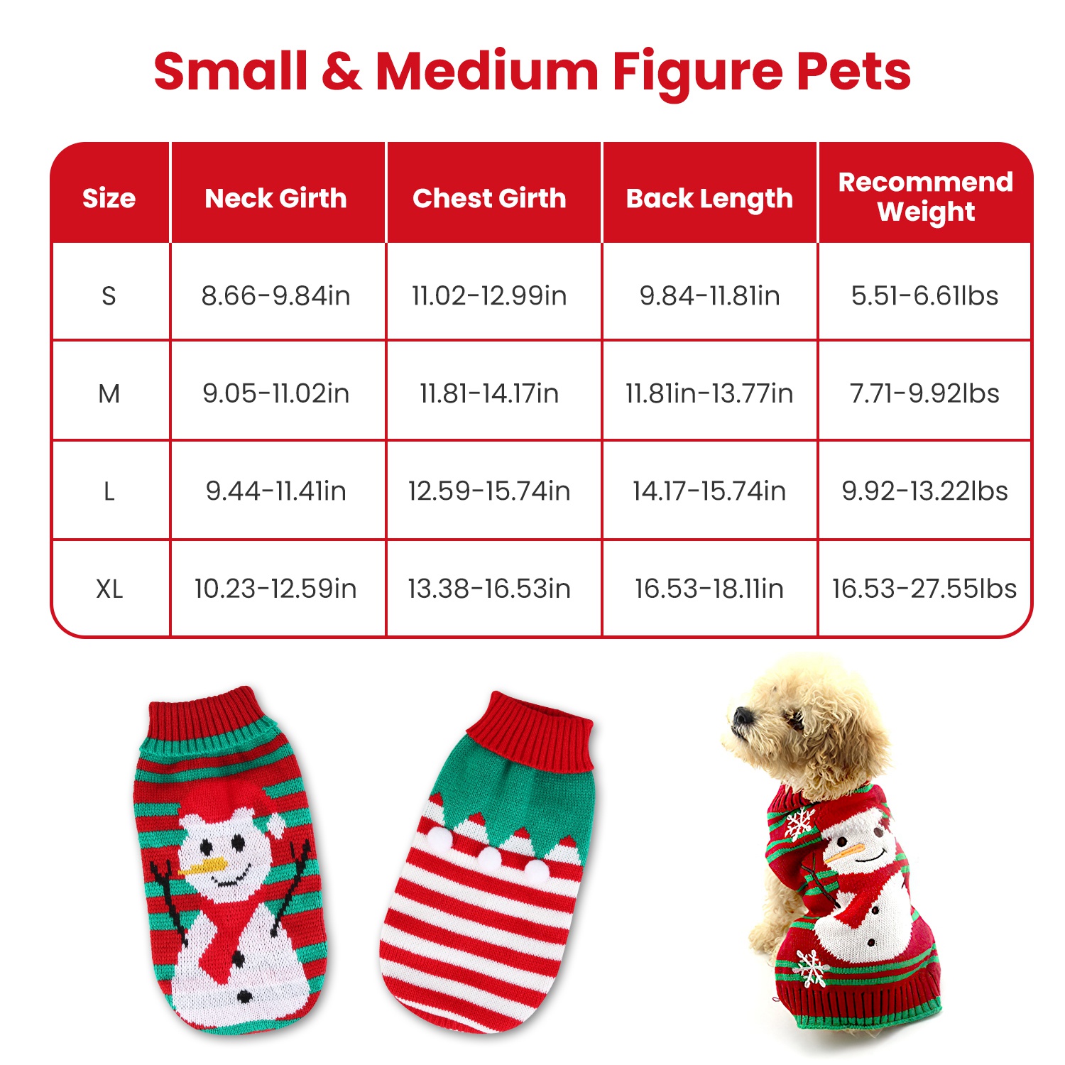 Size XL: Neck Girth 26-32cm/10.23-12.59in, Chest Girth 34-42cm/13.38-16.53in, Back Length 42-46cm/16.53-18.11in, Recommend Weight 7.5-12.5kg/16.53-27.55lbs